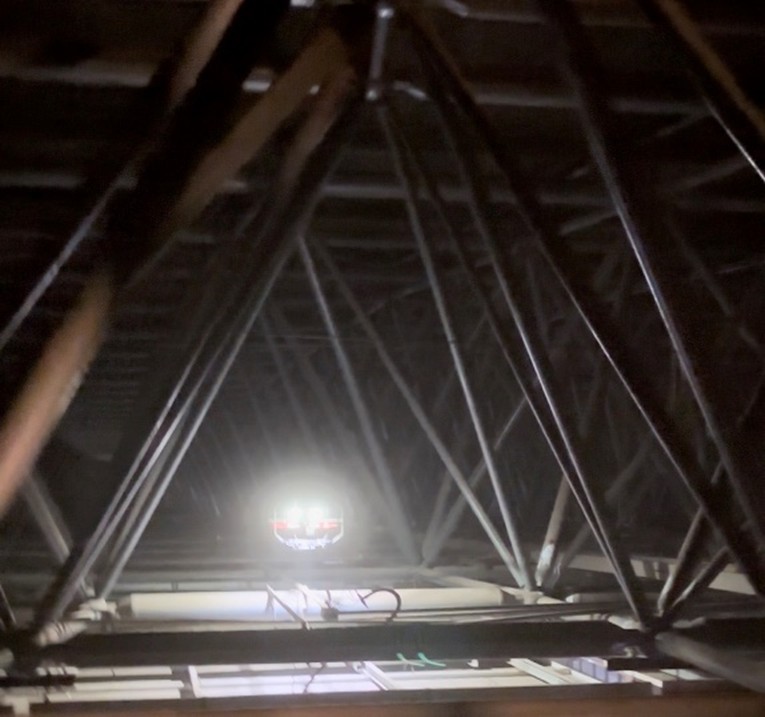 (2)导入规划路径至室内防撞无人机,搭载红外热成像与补光吊舱,执行自主飞行任务,实时传输结构表面影像数据。