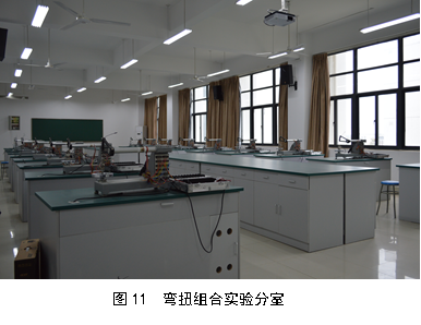 5)组合试验架实验分室(综合二号实验楼211室):主要设备包括材料力学组合试验架和20点静态应变仪18套。