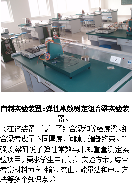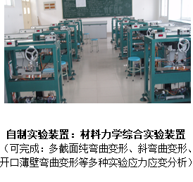 1.力学实验室(翡翠湖校区)主要包括:1)理论力学实验室;2)材料机械性能测量实验室;3)材料力学弯曲变形综合实验室;4)弯扭组合实验室;5)弹性常数测定组合梁实验室等。实验室以本科基础实验教学为主,每年承担全校各专业的理论力学、材料力学及工程力学课程约4万人时数的实验教学任务,涉及机械、汽车、土建、材料、仪器仪表及资环等学院3000多学生。目前,实验室可正常开设理论力学课程实验——振动参数测试与分析、隔振、动力消振等,共8学时;材料力学、工程力学课程实验——材料力学性能参数测定、纯弯曲、斜弯曲、弯扭组合、薄壁构件弯曲中心、组合梁、弹性常数及未知载荷测定等各种状态下结构的应变测量及应力分析,共24学时。其中部分内容是本实验室自行开发的教学实验。完成几十项科研课题和工程项目的检测分析,发表了相关学术论文。