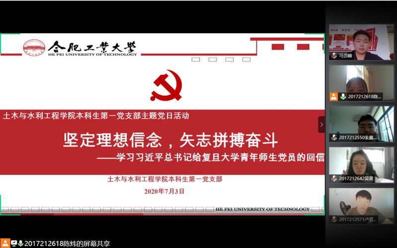 本科生第一党支部在线上开展了“坚定理想信念,矢志拼搏奋斗”主题党日活动,支部全体党员参与本次活动。