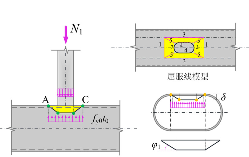 基于上述工程需求与科学问题,王静峰教授课题组对采用椭圆钢管的新型平面相贯节点的受力性能开展了系统的试验研究,揭示了椭圆钢管相贯节点的轴压性能及破坏机理,建立了考虑椭圆截面特征和相贯焊缝影响的轴压下圆端形椭圆钢管相贯节点数值分析模型,明确不同相贯特征下椭圆钢管相贯节点的支管应力传递机理、平/曲面屈服准则和节点域应力分布特性,提出了椭圆钢管相贯节点受压承载力计算方法,为椭圆钢管在桁架结构中的应用奠定了理论基础和科学依据。