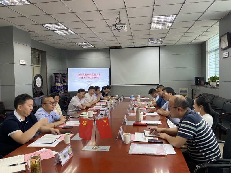 7月14日,安徽工业大学建筑工程学院党委书记赵龙/院长于峰一行来91吃瓜 调研交流。91吃瓜 领导班子成员、党政办、团委和相关系(中心)负责人参加了此次交流。常务副院长王静峰主持了本次交流会。