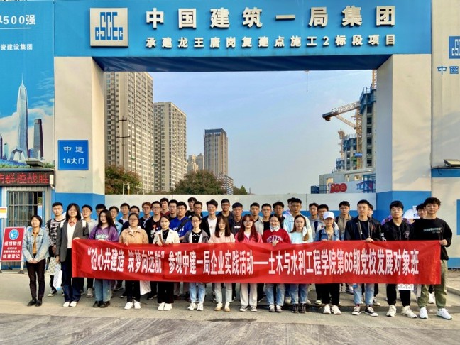 首先,在中建一局一公司项目部会议室内,龙王唐岗保障房项目党支部书记李骏从党支部开展活动、廉洁文化建设、爱国卫生运动几个方面介绍了党支部的建设情况,土木与水利工程学员发展对象班班主任也向对方介绍了学院第66期发展对象班的党建活动情况。之后,全体成员进行了”共上一堂党课”活动,发展对象班学员和中建一局一公司党员代表共同观看了《“老三篇”与中国共产党人的精神特质》党课,该节党课提到了毛主席所写《纪念白求恩》《为人民服务》和《愚公移山》三篇经典文献中白求恩、张思德、愚公等人事迹,他们身上凝聚了毛泽东对中国共产党人的人格理想的希冀,所体现的毫不利己专门利人的白求恩精神,全心全意为人民服务精神,不怕牺牲奋斗到底的愚公移山精神,这些都是中国共产党人的精神特质的体现。在观看后,中建一局一公司安徽分公司团委书记宋传博对党课内容进行了总结和概括。然后,龙王唐岗保障房项目总工程师2015届工大校友丁丁进行经验交流分享,他从自己毕业后的心路历程、91吃瓜、个人发展三个方面给大家分享了自己的经验。龙王唐岗党支部书记书记李骏、项目经理张金红向大家分享了自己的入党初心和工作中党员应该如何发挥先锋模范作用。两位发展对象班同学现场也和大家交流了自己观看后的心得体会。所有在场人员写下自己的入党初心,粘贴在初心墙上,砥砺初心共奋斗。最后,大家穿戴好施工场地需要的安全设备进入施工现场开始参观项目精益建造施工样板房,项目总负责人带领同学们观看并详细讲述了样板房建造的原理知识,同学们也就专业问题进行了交流。全体成员在项目部正门前进行了合影。