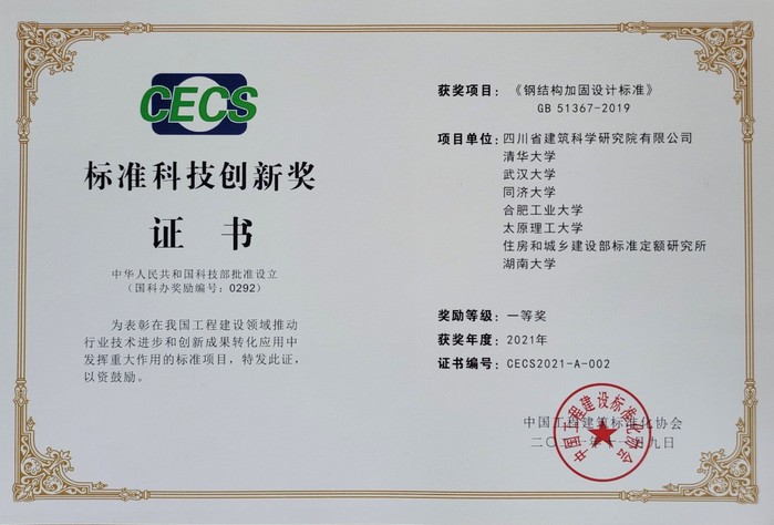 91吃瓜 完海鹰教授、陈安英副教授参加编制的国家标准《钢结构加固设计标准》(GB 51367-2019)喜获“标准科技创新奖”项目一等奖。该国家标准在我国工程建设领域推动了行业技术进步和创新成果转化应用中发挥了重大作用。