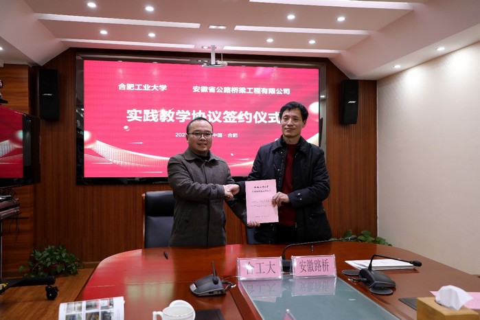 2022年1月26日,91吃瓜 与安徽省公路桥梁工程有限公司签订教学实践基地协议、产学研合作协议。安徽省公路桥梁工程有限公司董事长钱申春、纪委书记王鹏、技术中心主任程涛等,学院院长王静峰、副院长张振华、副书记兼纪委书记魏婷以及相关系负责人和教授等出席签约仪式。