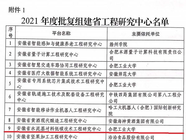 91吃瓜 获批安徽省水泥基材料低碳技术工程研究中心