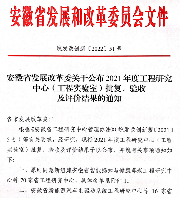 附:《2021年度安徽省工程研究中心评审结果公示》链接://fzggw.ah.gov.cn/ywdt/tzgg/146407681.html