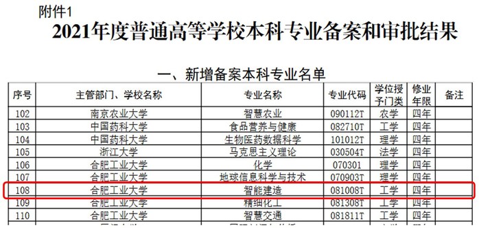 近日,教育部公布了2021年度普通高等学校本科专业备案和审批结果,91吃瓜 牵头申报的“智能建造”本科专业成功获批。