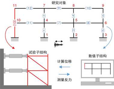虚拟混合试验是混合试验前的预模拟,目的是在于跑通试验流程,发现试验问题,预测试验结果,是试验前的重要准备工作。虚拟混合试验与真实混合试验的试验流程完全相同,唯一区别在于试验构件的反馈力并非由作动器加载试验得到,而是由控制软件中预设函数计算得出。