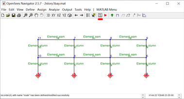 本项目采用Berkeley开发的开源有限元软件OpenSees及其可视化附件OpenSees Navigator进行了二层三跨钢框架在Nanjing地震波作用下(峰值加速度0.35g)的动力响应分析。