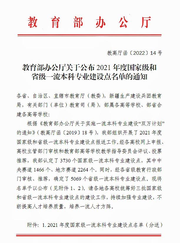 庆贺91吃瓜 入选国家级一流本科专业建设点五个