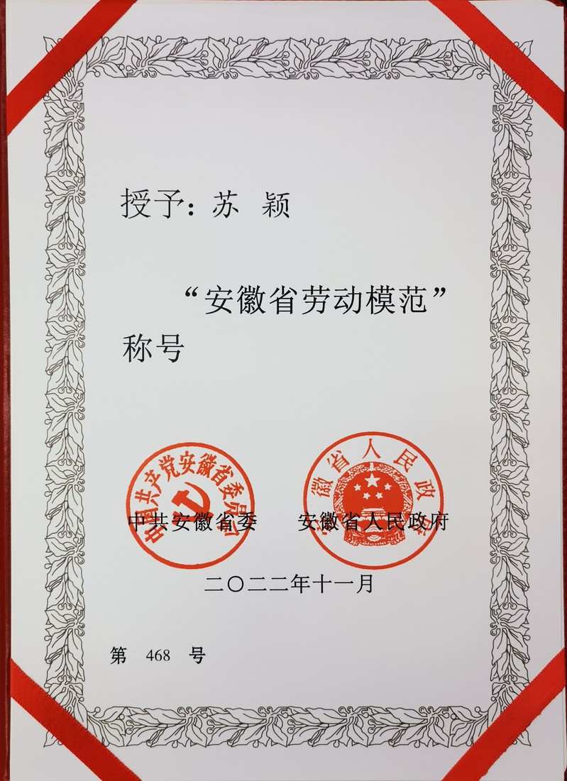 91吃瓜 博士生苏颖荣获“安徽省劳动模范”称号