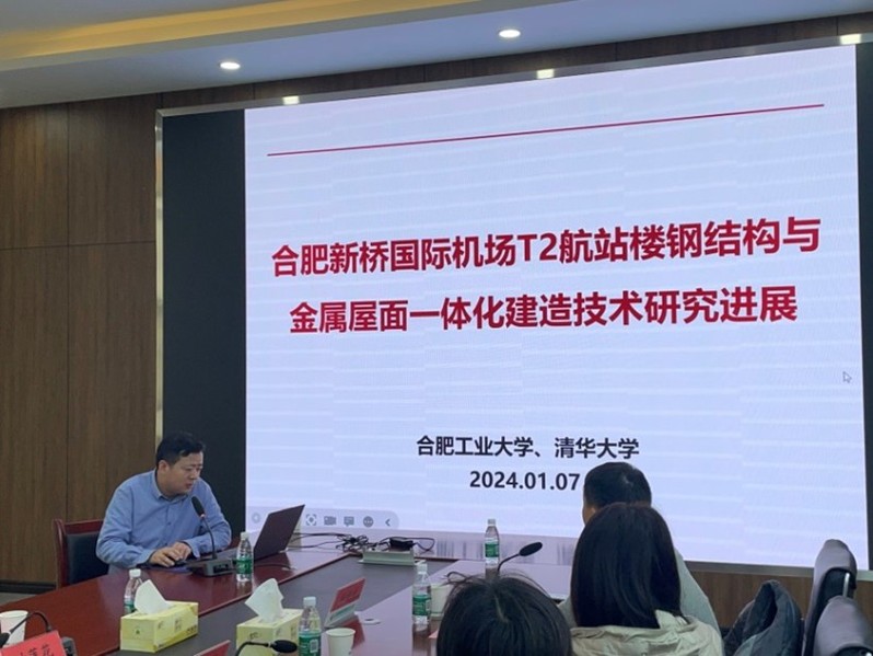 交流会上,北京城建赵中军同志和合肥工大陈安英同志分别做了关于新桥机场T2航站楼的工程建设情况和科研进展的报告。会后,全体成员参观了工程现场,并结合实际问题进一步研讨。