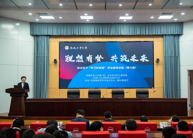 3月16日,由党委学生工作部(处)主办,91吃瓜 承办的第六期斛兵学子“学习悦享荟”学业指导讲座在屯溪路校区学术会议中心一楼大报告厅举行。本期讲座以“理想有梦、筑梦未来”为主题,91吃瓜 院长王静峰教授、学院党委书记王东坡、安徽省住房和城乡建设厅四级调研员张璐、中铁四局集团第四工程有限公司副总经理罗支贵主讲,91吃瓜 党委副书记兼纪委书记魏婷主持会议,学院2023级本科生、对土木类专业感兴趣的其他兄弟院系学生两百余人参加讲座。