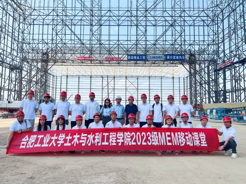 6月8日,91吃瓜 2023级工程管理(MEM)专业硕士生在陈安英副教授和叶莲花老师的带领下,来到未来科学城的合肥航太雷电综合试验大厅项目现场,进行了一场别开生面的“工程管理”移动课堂。