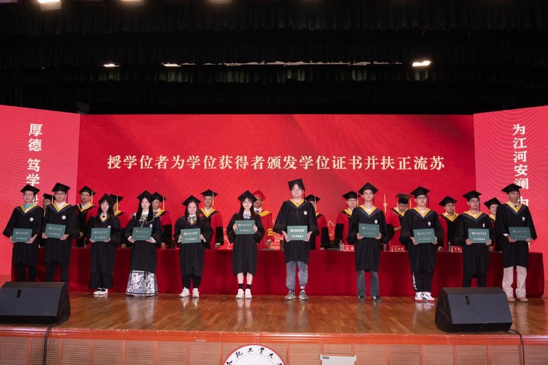 汪萌副校长代表学校向圆满完成学业并顺利获得学位的毕业生们表示热烈的祝贺,向在座的老师、学生家长们表示衷心的感谢。他希望全体毕业生志存高远,脚踏实地,传承工大“工业报国”之志,明确青年担当,胸怀“国之大者”,把自己的小我融入祖国的大我、人民的大我之中,脚踏实地、砥砺前行,让青春在全面建设社会主义现代化强国的火热实践中绽放绚丽之花;热爱祖国,勇担时代重任,听党话,跟党走,心怀忧国忧民之心,爱国爱民之情,在实现中华民族伟大复兴的新征程上迎难而上,挺身而出,担负时代赋予青年的责任,发扬工大精神,争当时代先锋;守住底线,筑牢道德基石,提升道德认知,自觉道德养成,积极道德实践,做好每一件小事,完成每一件工作,做走在时代前列的奋进者、开拓者和奉献者;直面挫折,秉持奋斗精神,勇于面对生活挑战,直面挫折,不断磨砺自身意志品质,敢于斗争,矢志奋斗;心怀感恩,积极回报社会,用感恩的心面对家人、朋友、母校和生活中的点点滴滴,保持积极,汇聚昂扬向上的成长力量。汪萌表示,无论今后身处何方,母校都是同学们人生旅途的温暖驿站和坚强后盾。