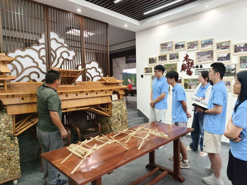 廊桥博览,探寻廊桥文化。团队首站来到了庆元县廊桥博物馆,这是中国第一家廊桥专题博物馆。博物馆基本陈列以“人间彩虹,梦幻廊桥”为主题,以廊桥遗存和廊桥文化为切入点,展现木拱廊桥的传统技艺和文化。团队成员通过聆听讲解,对庆元县廊桥的历史和发展有了更加深入的了解。成员们看到了的全国迄今现存寿命最长的木拱廊桥如龙桥的桥模,造型美观、工艺精湛。成员们领略到了传统与工艺的结晶所带来的独特魅力,也深深感到廊桥悠久的历史和文化。