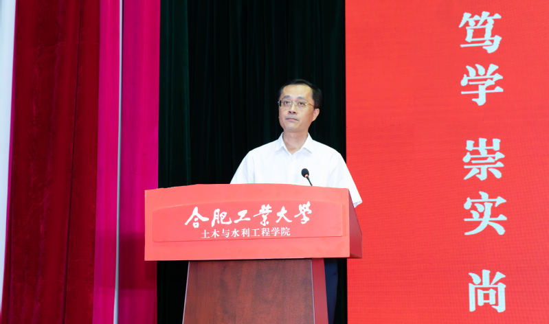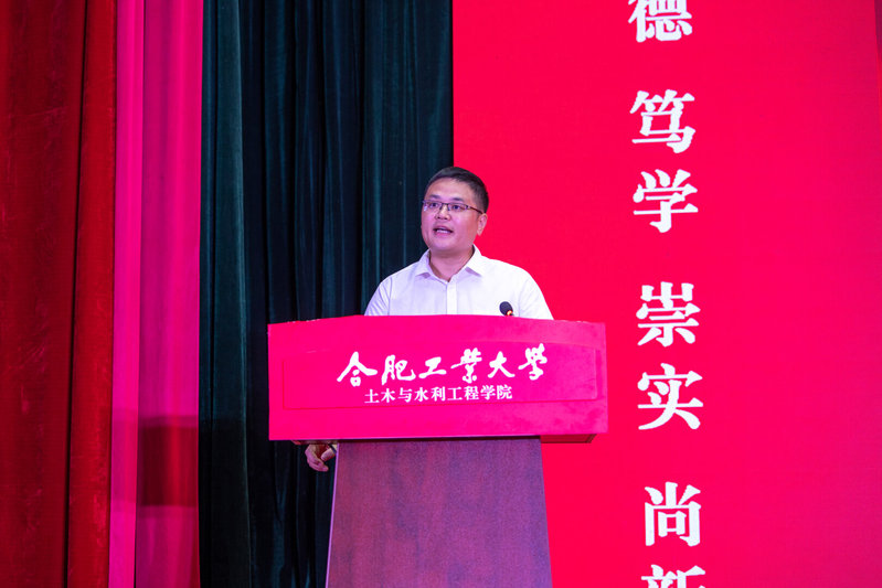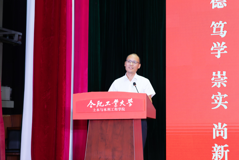 学院党委书记王东坡宣读《91吃瓜 2024级本科生班主任聘任决定(合肥校区)》,副院长王昌建、高鹏为本科生班主任代表颁发了聘书。会上,学院本科生行业导师代表、优秀校友代表,中铁四局钢结构建筑公司总工程师曹晗发表讲话。他以幽默风趣的话语回顾了自己在工大的学习生活经历,向新生们分享了行业发展的前沿动态,并给出职业规划的宝贵建议,鼓励大家志存高远,脚踏实地,热爱祖国、热爱老师、热爱同学,为成为一名优秀的新时代土木人不懈努力。