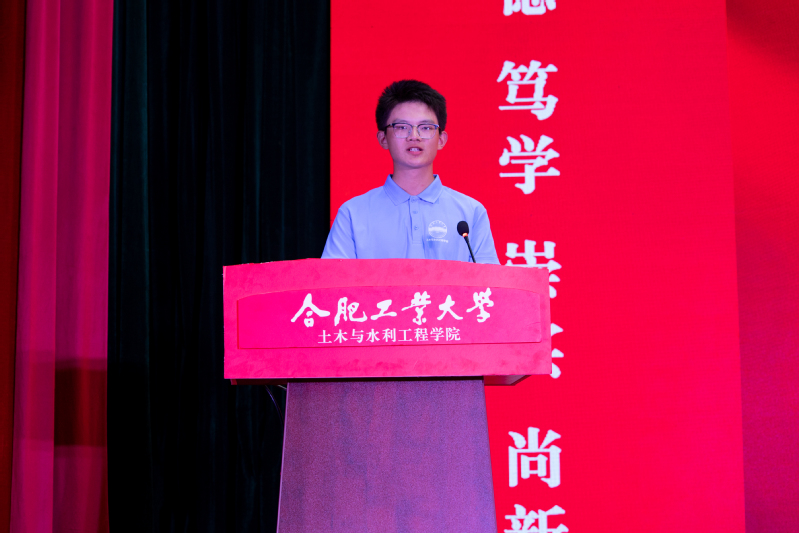 研究生新生代表徐颖同学、合肥校区本科生新生代表杨精昱同学以及宣城校区本科生新生代表许彭辉同学分别发言。他们畅谈了对未来学习生活的憧憬与规划,立志坚定理想信念、涵养爱国情怀,秉持工大校训,努力成为德才兼备、品学兼优的工大学子。