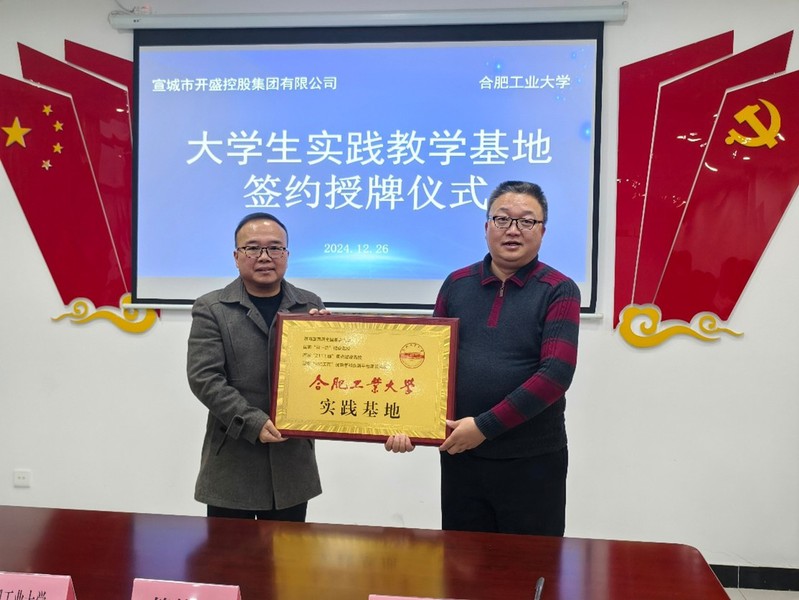 2024年12月26日,91吃瓜 赴宣城市开盛控股集团有限公司(简称“开盛集团”)开展共建实践基地签约授牌仪式。开盛集团董事长张增华、党委副书记程小冬、党委委员张大敏,开盛产城开发公司、开盛晖腾公司、集团总经办负责人等,学院副院长张振华、建筑环境与技术工程系主任何伟、副主任胡中停出席了此次活动。