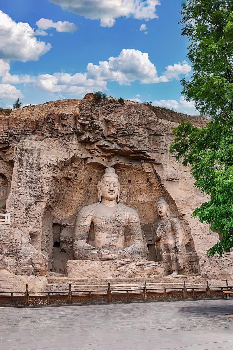 文化遗产:云冈石窟是中国三大石窟群之一,也是世界闻名的石雕艺术宝库之一。它代表了公元5世纪至6世纪时中国杰出的佛教石窟艺术,是研究中国古代历史、文化、艺术和宗教等方面的重要实物资料。