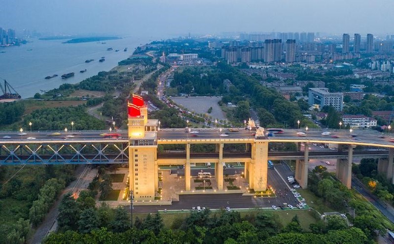 建设过程中,南京长江大桥由中国人民自行设计、自行施工,克服了诸多技术难题,成为当时中国经济建设的重要成就之一。大桥的建成不仅解决了南北交通的难题,还极大地促进了中国经济的发展和交流。南京长江大桥由正桥和引桥两部分组成,正桥长1576米,引桥部分则包括上层公路桥和下层铁路桥。上层公路桥长4589米,车行道宽15米,两侧各有2米多宽的人行道;下层铁路桥长6772米,宽14米,为双轨复线铁路。