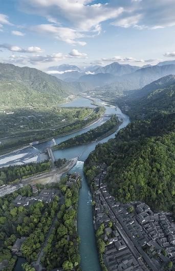 都江堰,位于四川省成都市都江堰市城西,坐落在成都平原西部的岷江上,是由渠首枢纽(鱼嘴、飞沙堰、宝瓶口)、灌区各级引水渠道,各类工程建筑物和大中小型水库和塘堰等所构成的一个庞大的工程系统,渠首占地面积200余亩。它担负着四川盆地中西部地区7市(地)40县(市、区)1130万余亩农田的灌溉、成都市多家重点企业和城市生活供水,以及防洪、发电、漂水、水产、养殖、林果、旅游、环保等多项目标综合服务,是四川省国民经济发展不可替代的水利基础设施。四川盆地中亚热带湿润季风气候区,四季分明,雨量充沛,气候温和。都江堰处于中国西部高原山地与成都平原两大地形阶梯的转折部,属龙门山脉的西南延展部分,是中国龙门山大断裂带通过的地区。地势西北高,东南低。西部属龙门山南段四川盆地边缘山地,由一系列北东一南西向山地构成,地势高亢,山岭海拔3000米以下。东部属成都平原,地势平缓。海拔一般在720米以下。