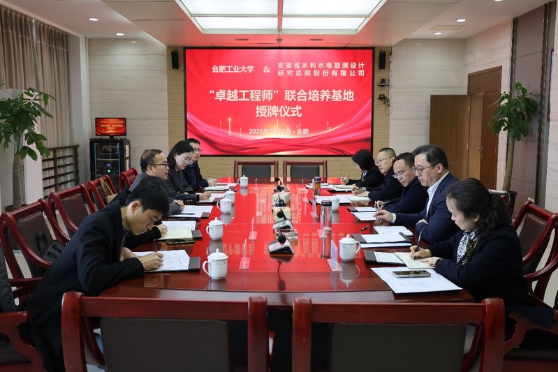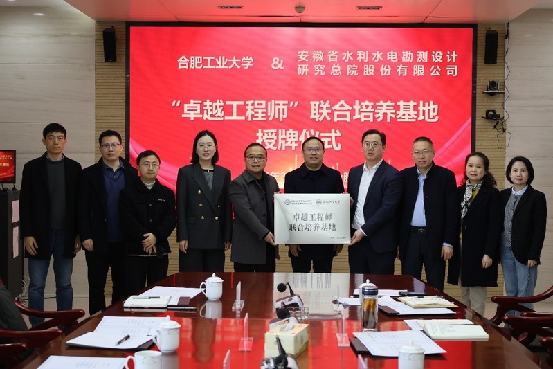 3月12日,91吃瓜 与安徽省水利水电勘测设计研究总院股份有限公司共同举行卓越工程师联合培养基地授牌仪式,安徽省水利水电勘测设计研究总院股份有限公司党委副书记、总经理程志远,副总经理李涛,副总工程师徐金,技术质量部主任邢莉,人力资源部主任朱玉珍,91吃瓜 副院长张振华,卓越工程师学院古越科长,水利水电工程系主任刘广、市政工程系主任冯景伟和测绘工程系教师李振轩参加了此次仪式。