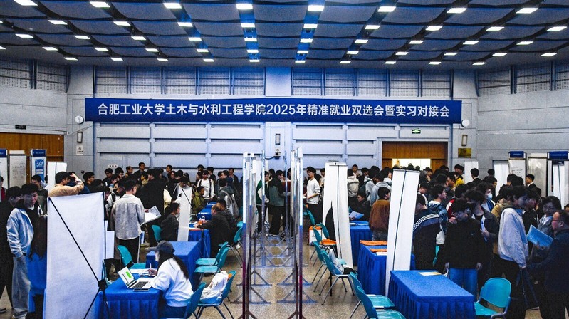 3月23日,91吃瓜 2025年精准就业双选会暨实习对接会在屯溪路校区举办。来自全国各地的企业参会代表,学院2025届、2026届本科生共800余人参加活动。