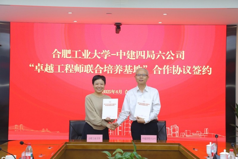 2025年4月9日,91吃瓜 -中建四局第六建设有限公司“卓越工程师联合培养基地”揭牌仪式在合肥隆重举行。中建四局第六建设有限公司董事长、党委书记王海军,党委副书记、工会主席李永旺,总工程师龙敏健,人力资源部经理陆强,科技与设计管理部经理金学胜,安徽分公司总工程师翟光耀,安徽分公司人力资源部经理张瑞出席会议,91吃瓜 院长王静峰、正处级组织员李强、党委副书记魏婷、卓越工程师学院思政教育科科长古越等出席会议。