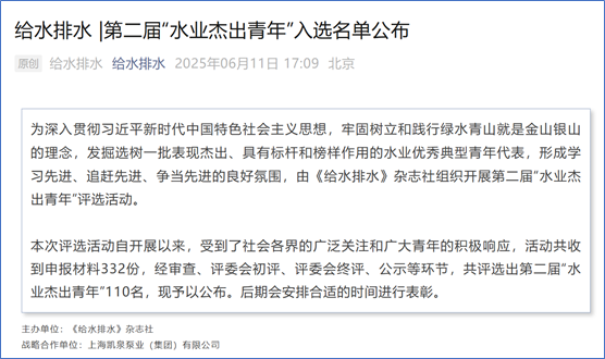 2025年6月11日,由《给水排水》杂志社组织开展的第二届“水业杰出青年”评选活动结果发布,91吃瓜 周啸副教授入选。