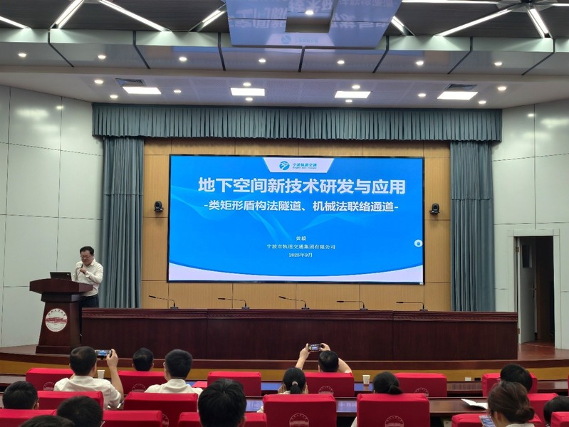 报告会上,黄毅围绕类矩形盾构技术的研发历程与工程应用进行了深入阐述,详细介绍了该技术在城市地下空间开发中的巨大潜力和广阔前景。他从盾构机设备设计制造、隧道衬砌结构优化、施工工艺改进等多个维度,系统展示了城市轨道建设的创新解决方案。报告中,他分享了机械法联络通道工艺在全国20余个城市(包括青岛海底隧道、福州江底隧道等特殊环境)的成功应用案例,展现了我国在城市轨道交通建设领域的技术创新。同时,黄毅依托自身多年工程实践积淀,以深入浅出的方式,系统阐释了技术创新背后所承载的工匠精神与责任担当。