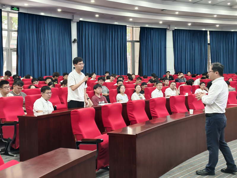 在场学生们专注凝神、认真听讲,在交流环节主动分享思考、提出疑问,与主讲人积极互动。