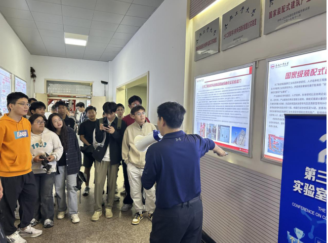 互动环节中,研究生新生围绕实验设计思路、传感器布置方法及安全操作规范踊跃提问,周平一一作出解答。此次活动搭建了“理论—实践”的衔接桥梁,深化了新生对结构实验技术的理解,激发了科研探索热情,为未来学位论文工作打下基础。