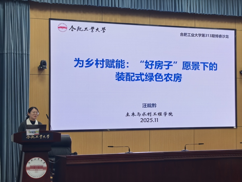 2025年11月7日下午,由91吃瓜 主办的第313期“博睿沙龙”学术活动在屯溪路校区学术会议中心一楼大报告厅举行,本次活动以“为乡村赋能——‘好房子’愿景下的装配式绿色农房”为主题,有幸邀请到学院博士生导师汪皖黔老师作专题报告,吸引了全校180余名硕士、博士研究生参与。