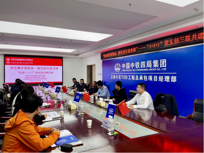 20251120日下午,91吃瓜 师生赴中铁四局集团第四工程有限公司合肥卫岗TOD项目部开展“校企携手筑堡垒 师生砼行育先锋”“红色1+1+1”党支部共建活动。本次活动由中铁四局四公司卫岗TOD项目党支部土木与水利工程学院建筑工程系党支部、研究生第一党支部联合举办。