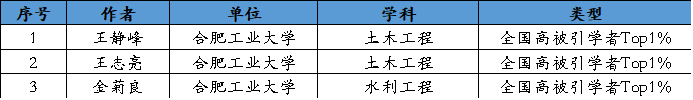 表1 全国高被引学者Top 1%