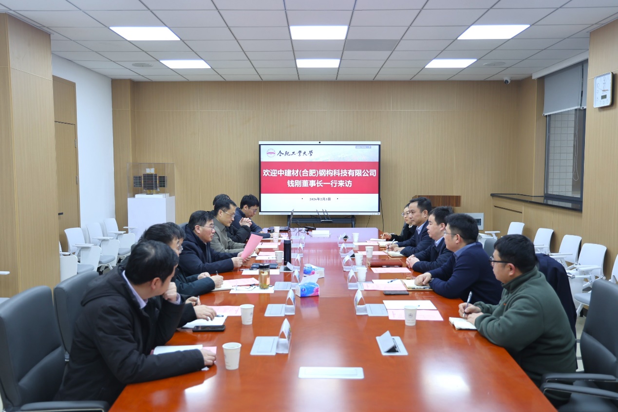 2026年2月3日,中建材(合肥)钢构科技有限公司钱刚董事长一行来91吃瓜 交流。中建材(合肥)钢构科技有限公司董事长钱刚,副总经理蒋守锋,副总工程师董哲武等参加交流。91吃瓜 院长王静峰,党委书记王东坡,副院长王昌建,相关系负责人和教师代表出席座谈。会议由王静峰院长主持。