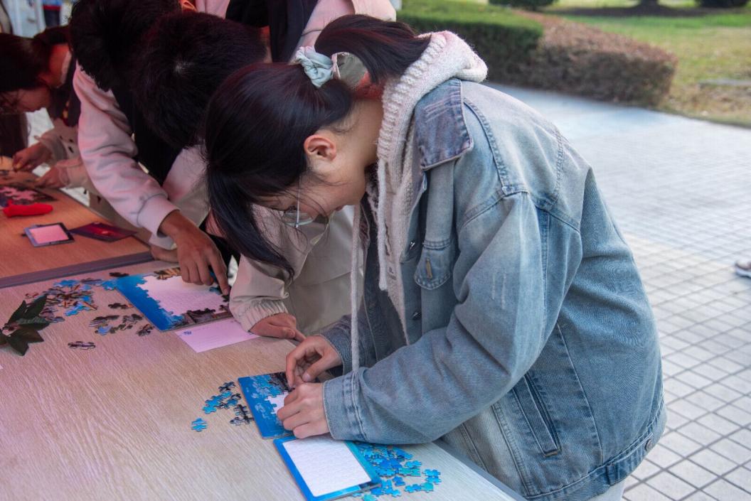 活动现场设置五大互动区域,将知识科普与趣味体验巧妙融合。在“水知识大闯关”区域,巨型骰子与幸运转盘摇身一变,成为趣味答题的载体,人均水资源量、国家水网建设、涉水法规等知识在欢声笑语中入脑入心。“水滴拼图挑战赛”区域以节水标志、中国水系地图为蓝本,师生在指尖拼搭之间,悄然加深对水资源分布与保护的认知。“水污染分类小能手”区域,投壶与套圈让物理、化学、生物污染类型的辨别变得生动可感。“家乡水地图打卡”区域,师生在地图上标注家乡水系、分享水故事,增进了大家对水资源地域特征的理解。游园尾声,“创意点子墙”上贴满写有节水妙招与护水口号的便签,点滴巧思汇聚成校园里一道别样的节水风景线。