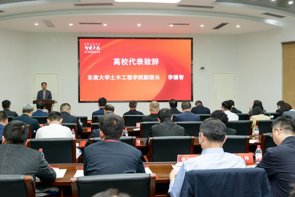 东南大学土木工程学院副院长李德智、安徽省土木建筑学会秘书长褚共伟、中铁四局集团第四工程有限公司党委副书记、总经理罗支贵分别代表高校、行业协会和企业致辞。他们表示,将以育人共同体为平台,深化校际、校会、校企协同与资源共享,共同探索智能建造时代人才培养新范式,携手推动土木工程教育高质量发展。