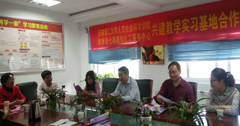 5月16日下午,91吃瓜 与淮南市七彩阳光社工服务中心共建教学实习基地合作座谈会在洞山街道中兴社区召开。参加座谈会的有市民政局副局长袁先进、社工科科长李娜,91吃瓜 党总支副书记、副院长吴云平,社会工作专业的部分教师、学生,七彩阳光社工服务中心主任夏荣军,社区负责人等。