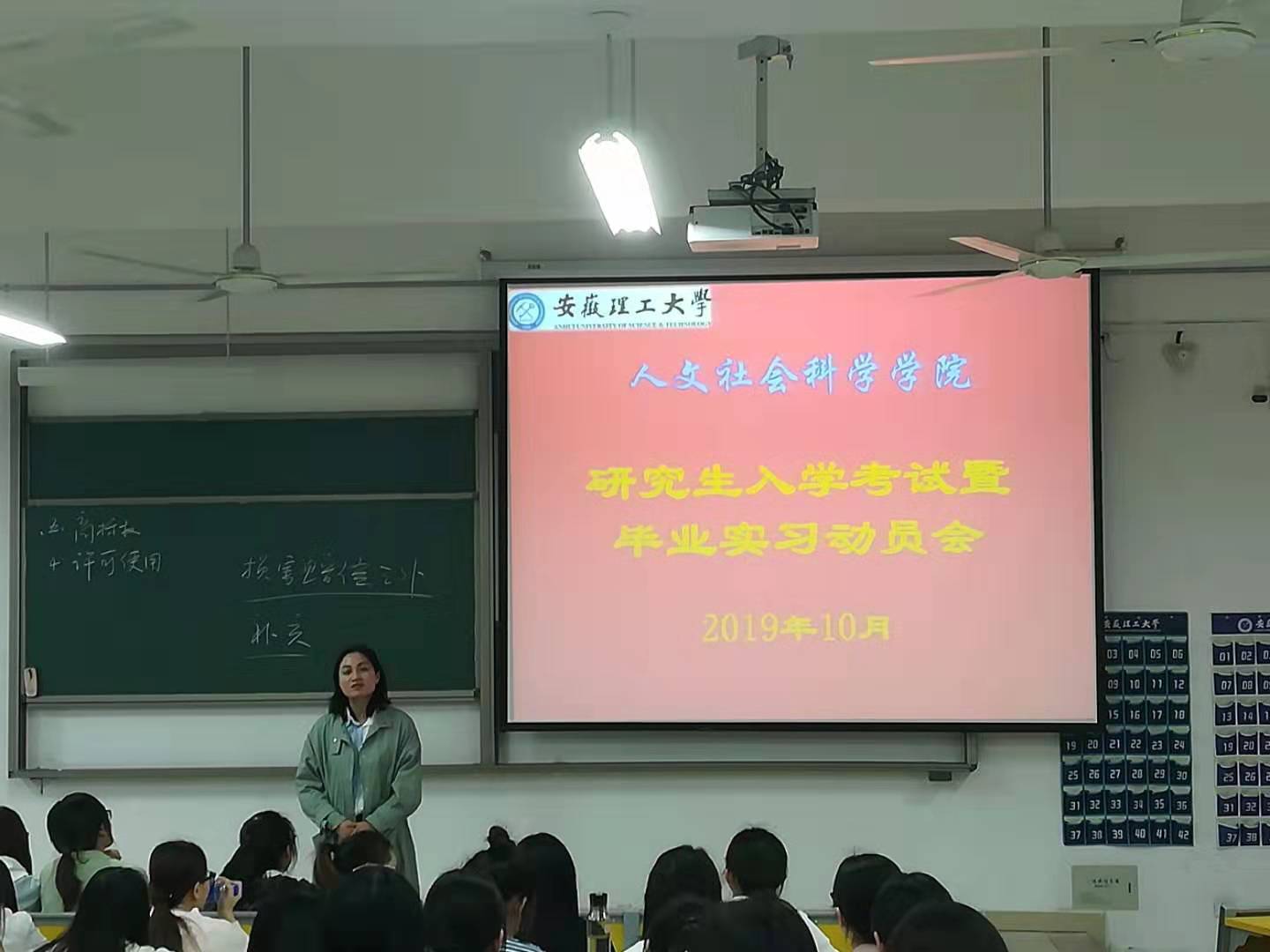 10月22日下午,91吃瓜 在明理南312教室召开研究生入学考试和毕业实习动员会,业务副院长方胜、毕业班辅导员张娜老师以及毕业班同学参加了会议。