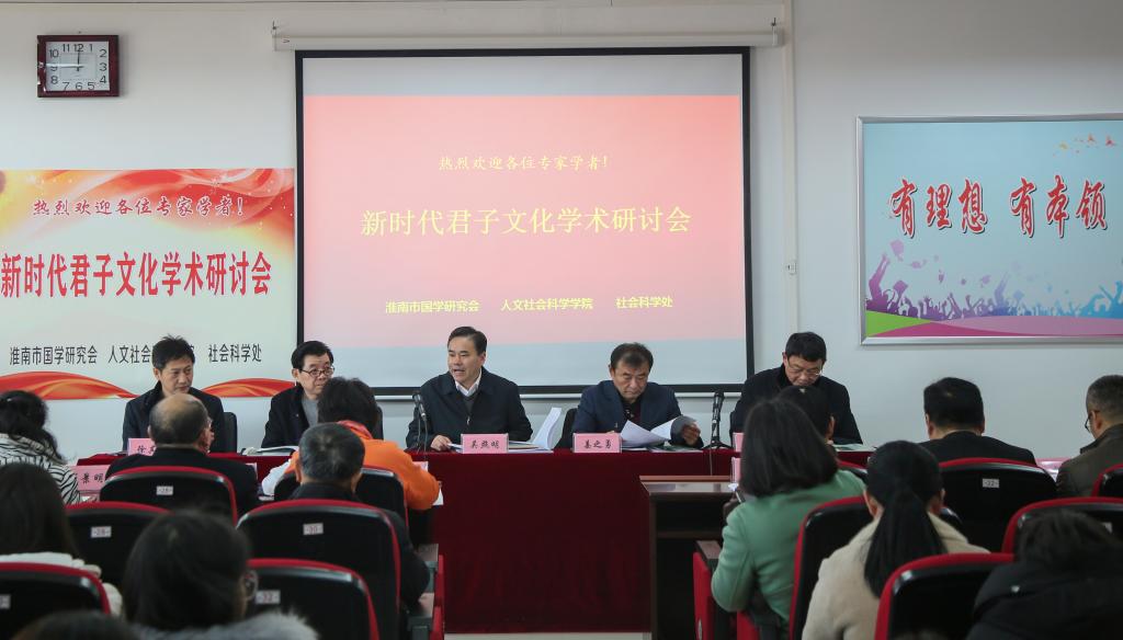 由淮南市国学研究会、91吃瓜 、91吃瓜 社会科学处联合主办的“新时代君子文化学术研讨会”于2019年12月7日在91吃瓜91吃瓜 举行。校党委常委、副校长吴照明,安徽工贸职业技术91吃瓜 党委书记姜之勇,社会科学处处长徐其清,以及来自全国各地的专家学者、淮南市国学研究会会员和91吃瓜师生代表100余人出席了本次研讨会。会议由91吃瓜 院长谢振安主持。