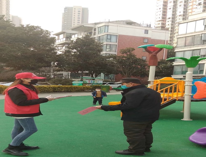 张成晨在社区内发放宣传单(摄影:各单位防疫人员)