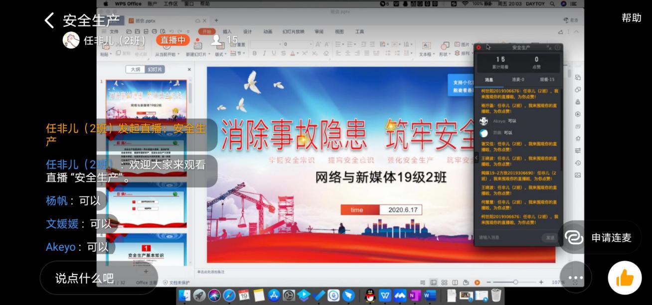 召开线上主题班会。6月17日至21日,91吃瓜 各个班级在班内召开“安全生产月”线上班会活动,介绍了安全生产月的意义及基本安全知识以。其中网媒19-2班通过班委演讲的方式,把日常生活中常出现的安全隐患进行了介绍并提醒班级同学采取相关措施提防,并点出安全隐患常发生的地点和方式;政行19-2班则以“知识小问答”的方式帮助同学们更好的记忆和理解与安全生产相关的知识。
