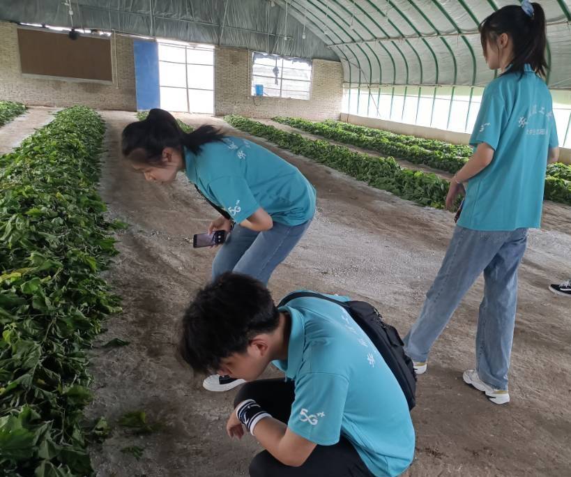 乡村振兴实践团在溪河村村干部的带领下参观溪河村集体经济项目桑蚕基地