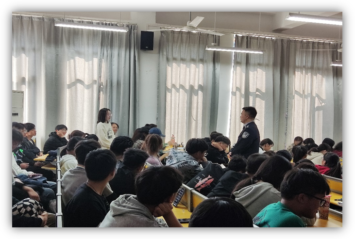 当前,电信诈骗团伙猖獗,诈骗手段不断升级,高校学生被骗案件不断增多。在讲座中,苏警官向同学们讲解了什么是传销、什么是电信诈骗,详细阐述了传销和电信诈骗案件的特征、形式与防范措施。及其校园电信诈骗的多种形式,如冒充熟人诈骗、刷单诈骗等等,同时针对性地提出了多种防范措施,重点介绍了现阶段常见的校园诈骗手段和新型诈骗方式,列举了校园诈骗的种种具体案例,起警醒作用,以防上当受骗,特别提醒同学们切莫贪图小利以免造成不必要的损失。苏警官与同学们亲切互动,解答了同学们提出的疑惑和问题。