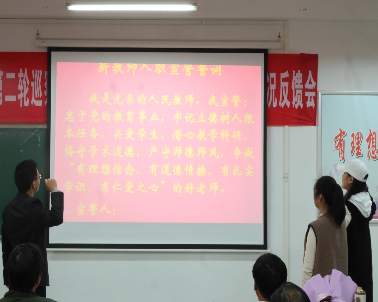 方胜带领2位新教师入职宣誓(摄影:闪诚章)