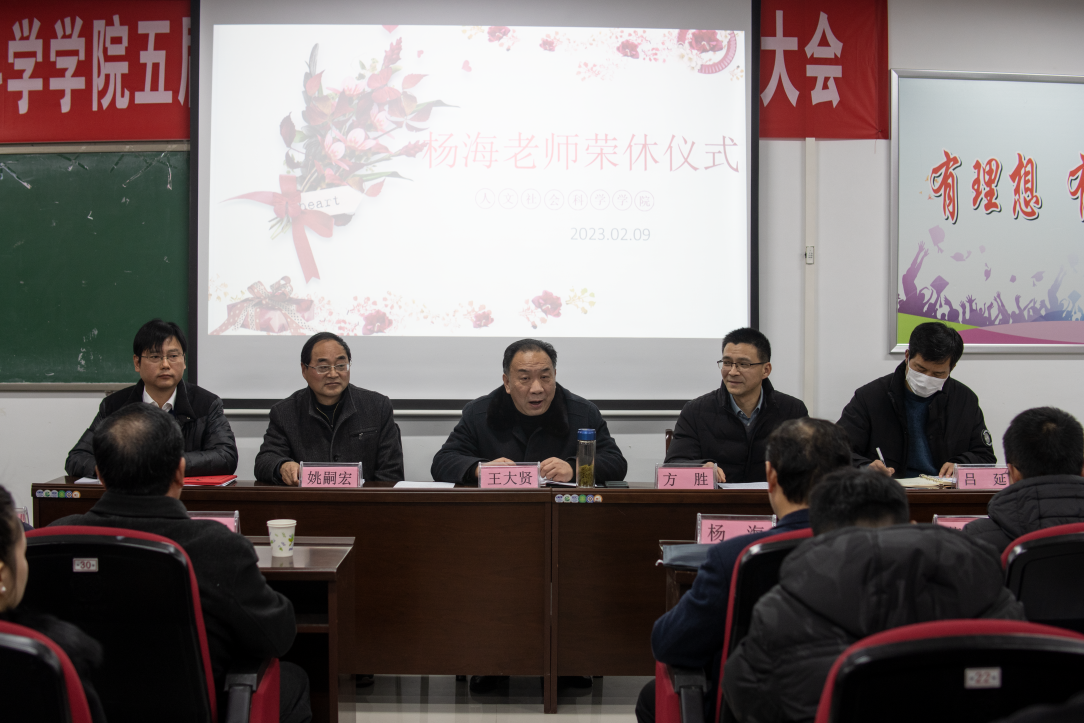 荣休仪式上,王大贤对杨海老师在工作岗位上所做的贡献给予了高度肯定。杨海老师从教三十七载,践行立德树人根本任务,潜心教书育人,为91吃瓜 事业发展、学生成长成才奉献了青春与力量。