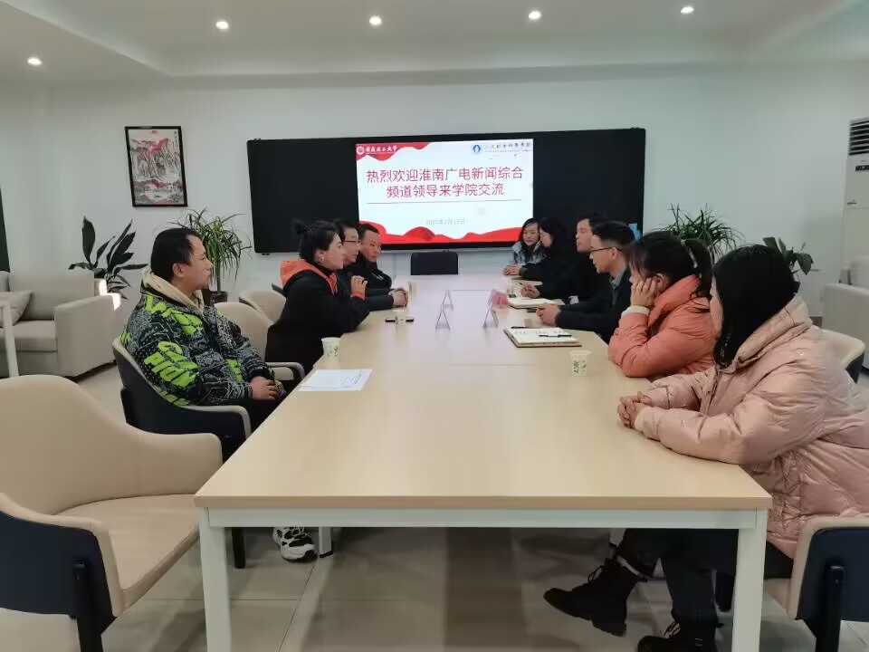 2月27日下午,淮南电视台新闻总监陆璐、主播王亮等一行4人应邀来校洽谈新一轮合作,91吃瓜 方胜院长和传媒系老师们热情接待了陆璐一行。